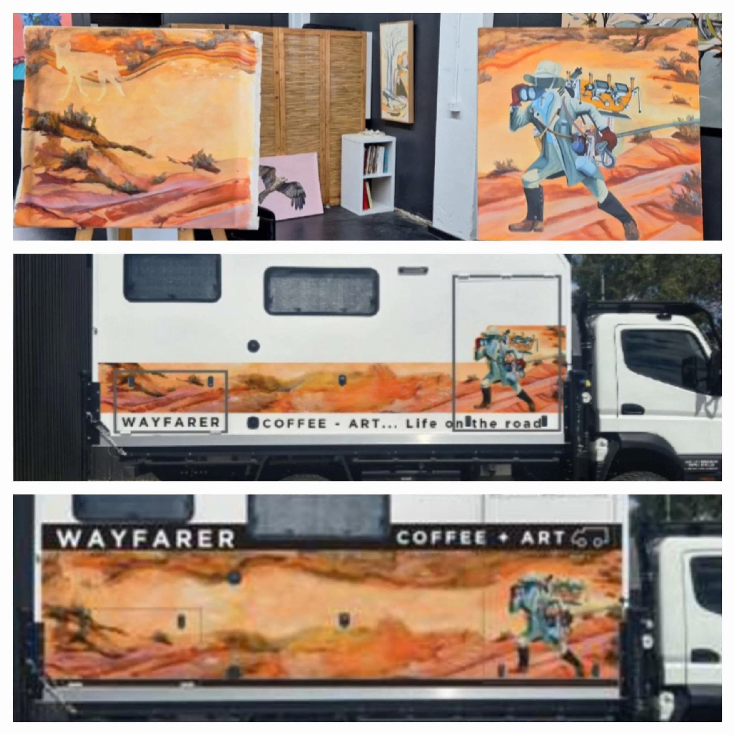 The removable living pod was custom designed to cater for life on the road painting, teaching and making coffee, yes , the BEAST has a commercial coffee machine on board. The pod designed around a huge toy box, housing a purpose built, light weight easel allowing painting and storage of up to 800 sq canvases, ready to send to Dorigo photographic services for reproduction and shipping. the toy box also houses lots of equipment to cater our live of adventure and passion for life.